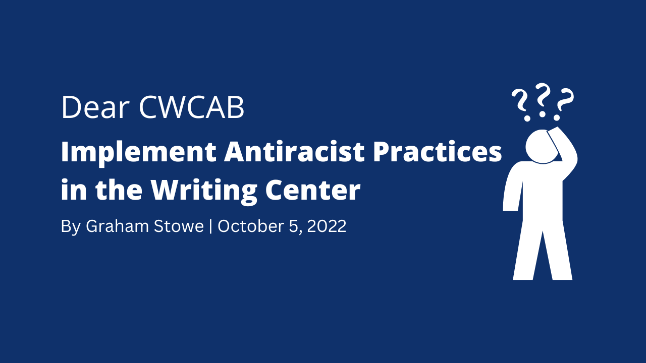 Dr. Graham Stowe is the Director of the Writing Center at Canisius College. He has been a guest author for the blog’s column “Dear CWCAB”. Dr. Stowe specializes in writing center theory and composition pedagogy. He has taught first-year writing courses with focuses on education theory, cultural studies, and the Harry Potter novels. He has also recently taught upper division courses on writing center theory and practice, the teaching of writing, and American literature. Writing is central to each of Dr. Stowe’s classes, both as a way to learn course material and to help students grow academically and personally.